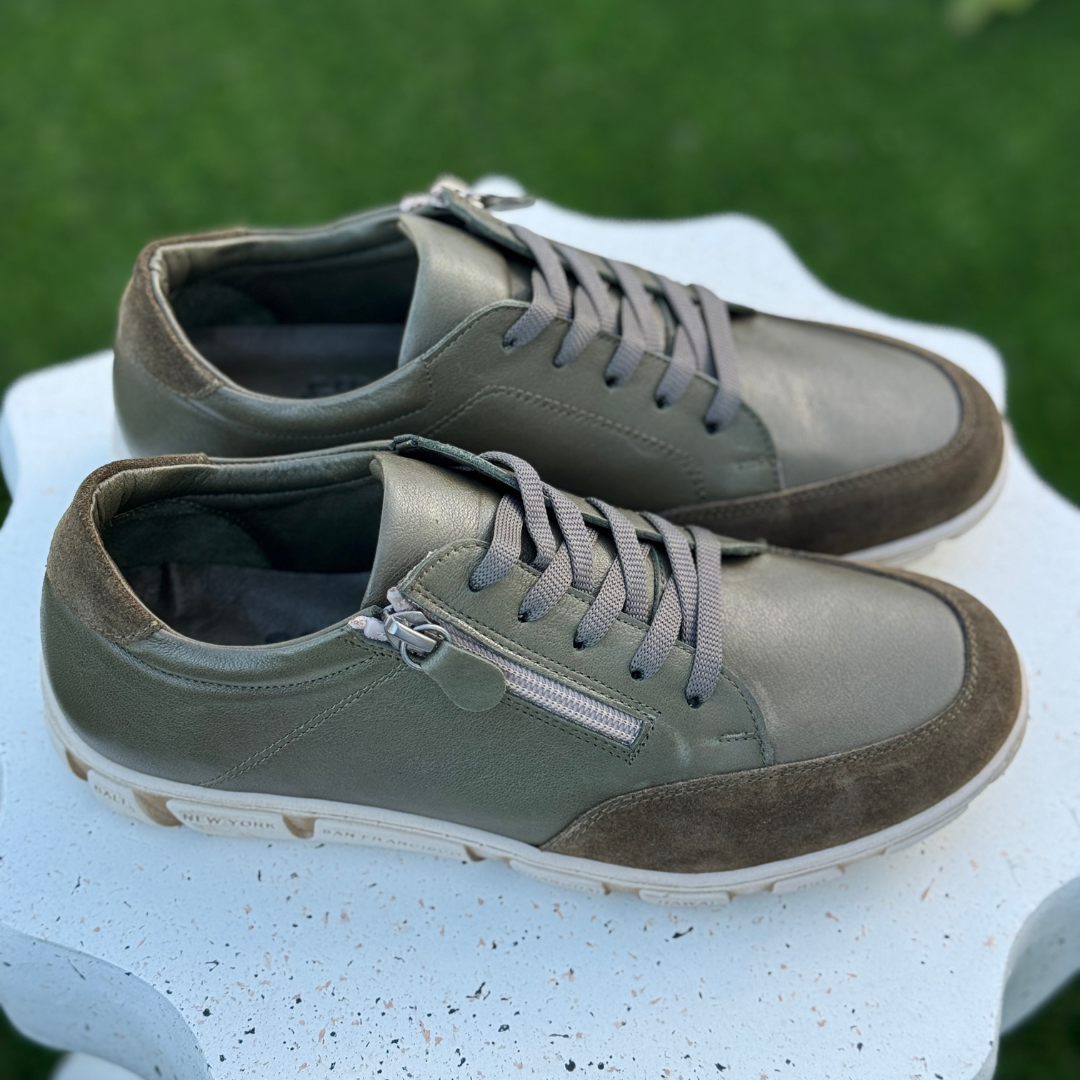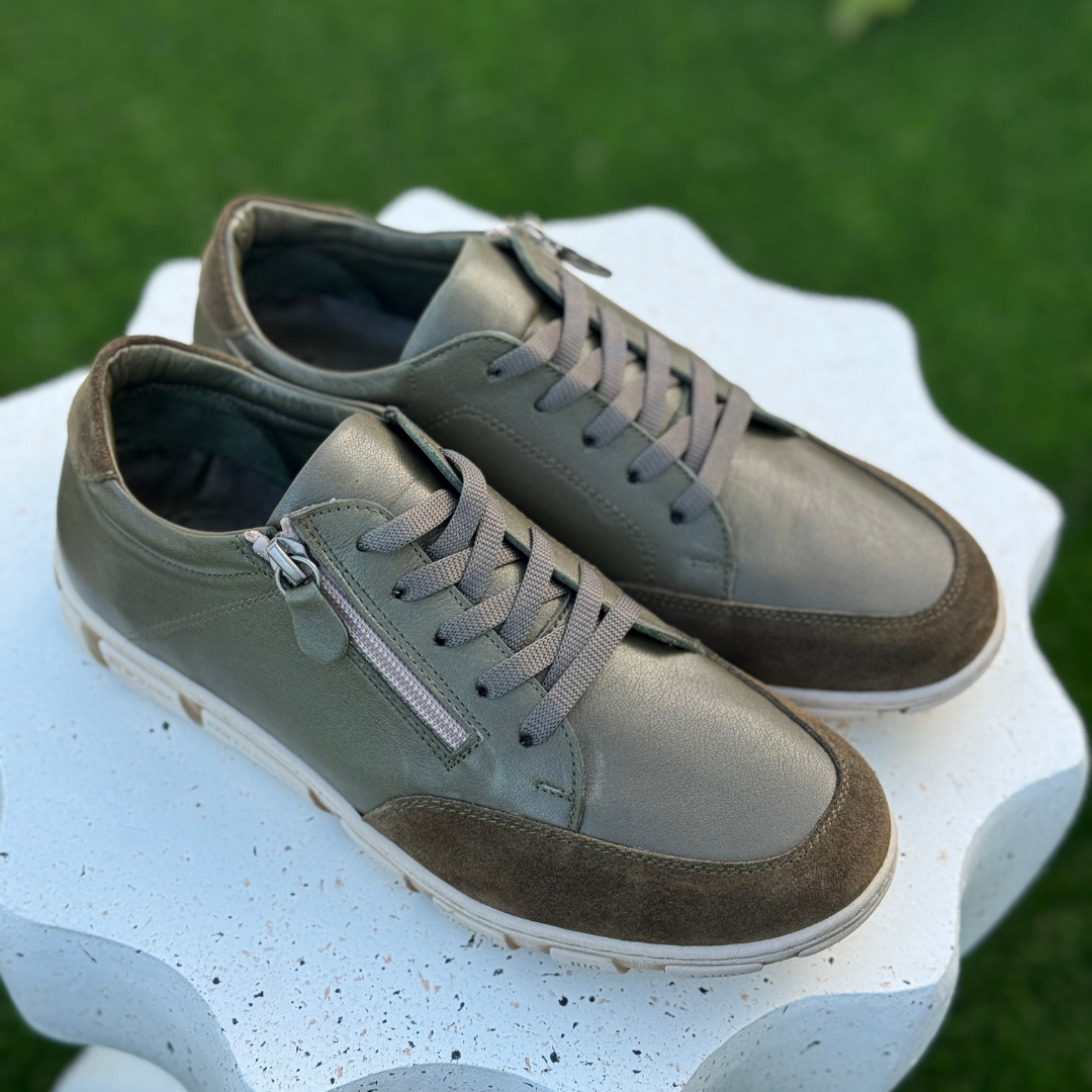 - Soft leather upper in olive