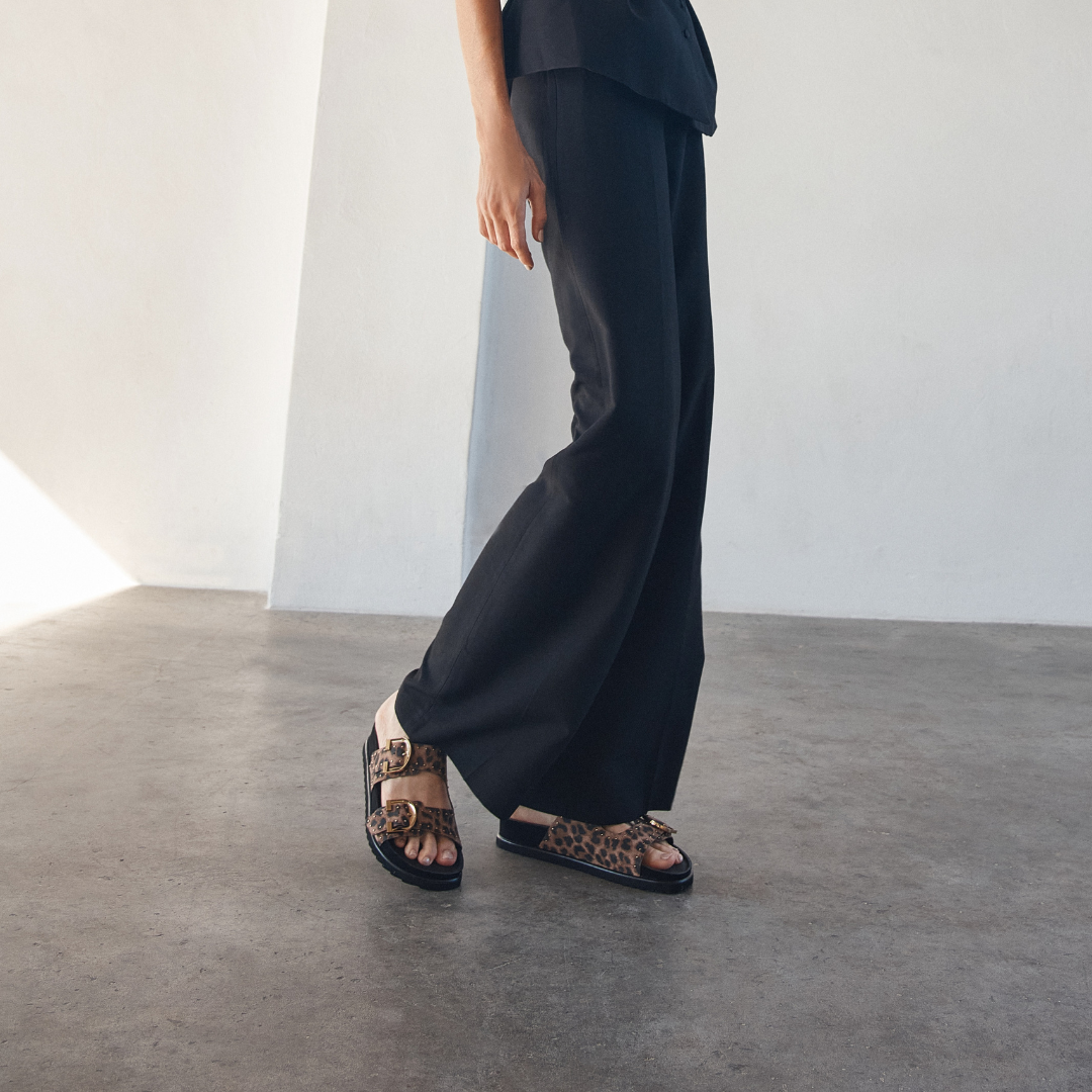 A comfy take on bold style: Deon, the slide that makes a statement in Dark Leopard Print Suede Stud. With adjustable straps, stud detailing, and our podiatrist-designed Sole Hero® Footbed, Deon delivers bold looks and unbeatable comfort. Designed to support your heel, arch, and forefoot, the dual-layer cushion system helps keep foot pain at bay. Crafted from luxe suede with a chunky sawtooth sole design, and a sole moulded with rice husk (an upcycled agricultural byproduct that’s lightweight yet supportive), Deon is your go-to for effortless style.