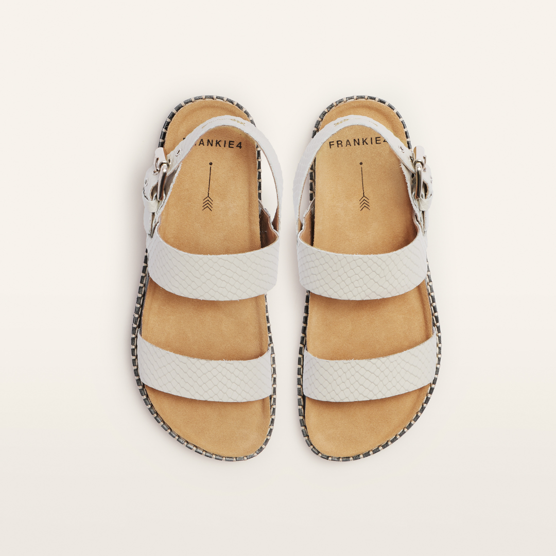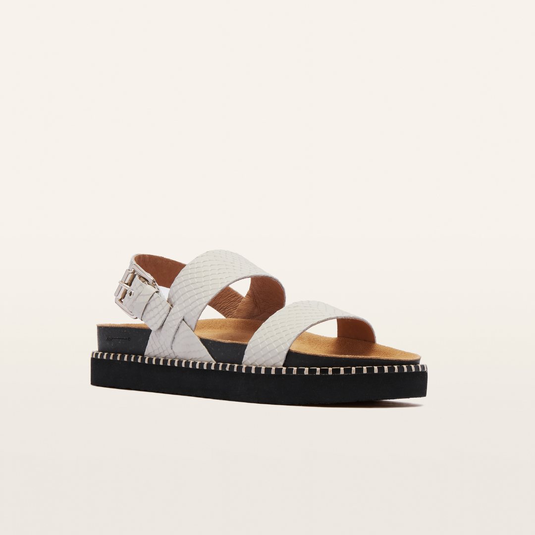 Elevating minimalist style, Hunter steps forward in Bone Emboss with refined texture and thoughtful design. Set on a raised flatform EVA sole moulded with rice husk—an upcycled agricultural byproduct—this sandal blends modern edge with lightweight support. Embossed leather straps, a secure adjustable back strap, and contrast stitching along the sole add subtle detail to its clean silhouette. Finished with a dual-layered support and cushion system, Hunter is made with both your wardrobe and wellness in mind.