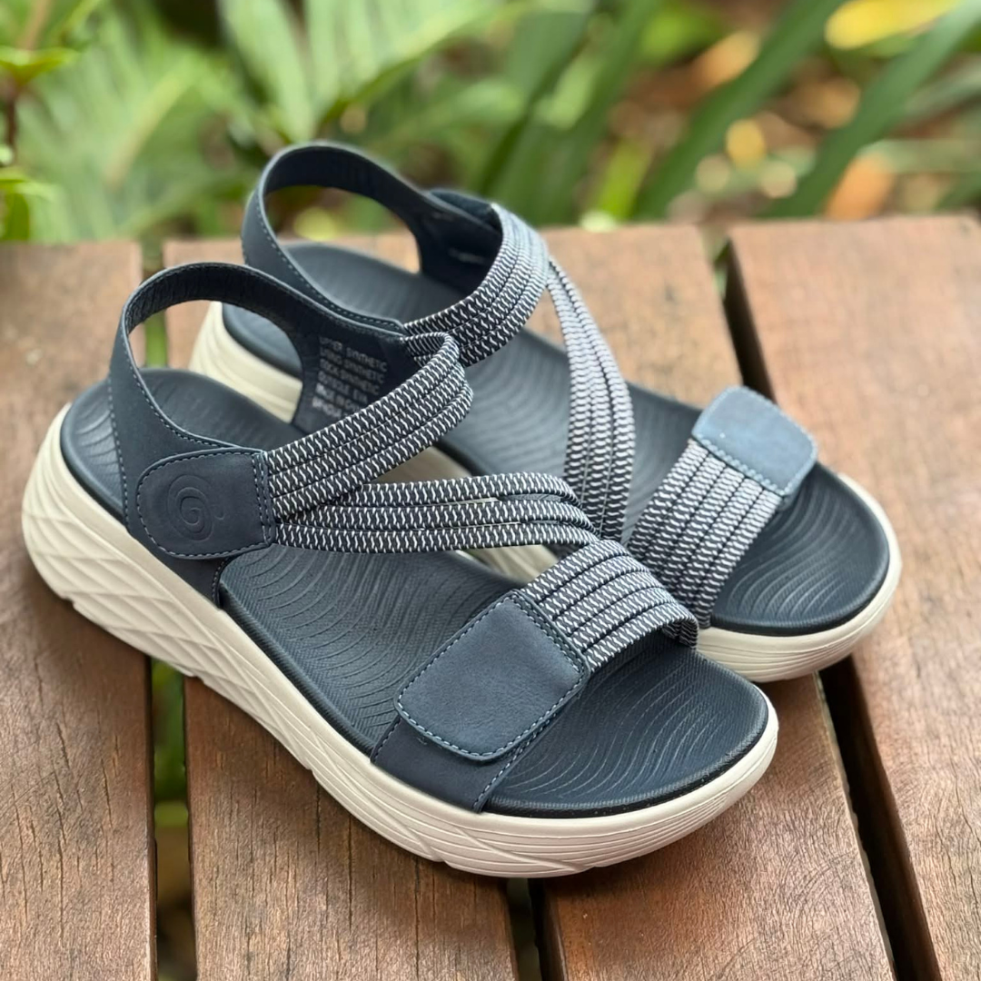 The velcro straps provide a secure, adjustable fit, while the cushioned footbed and contoured sole deliver all-day support. Finished with a chunky yet lightweight sole, these sandals are perfect for casual days, travel, or relaxed weekend wear.