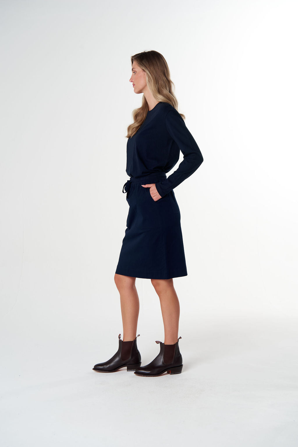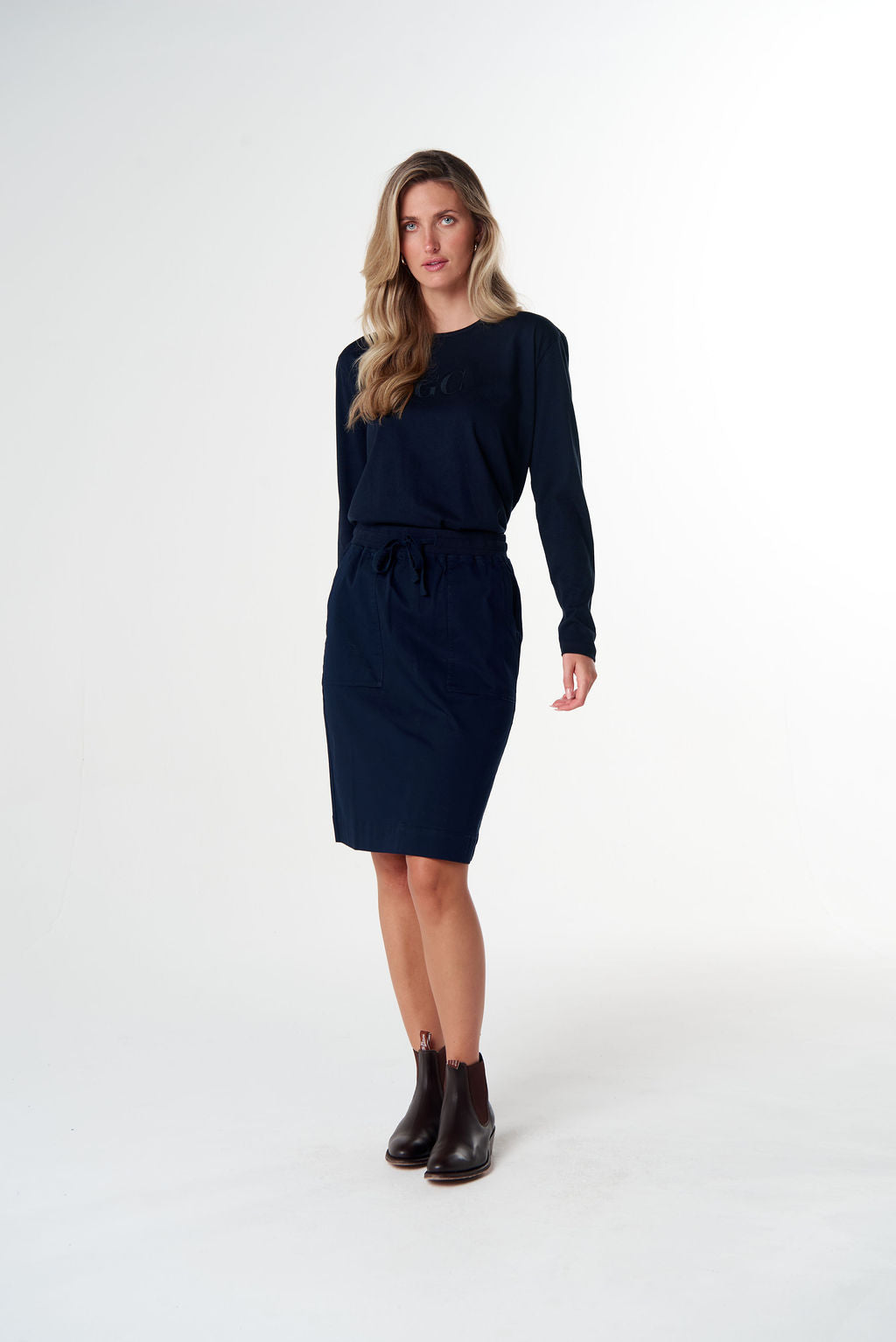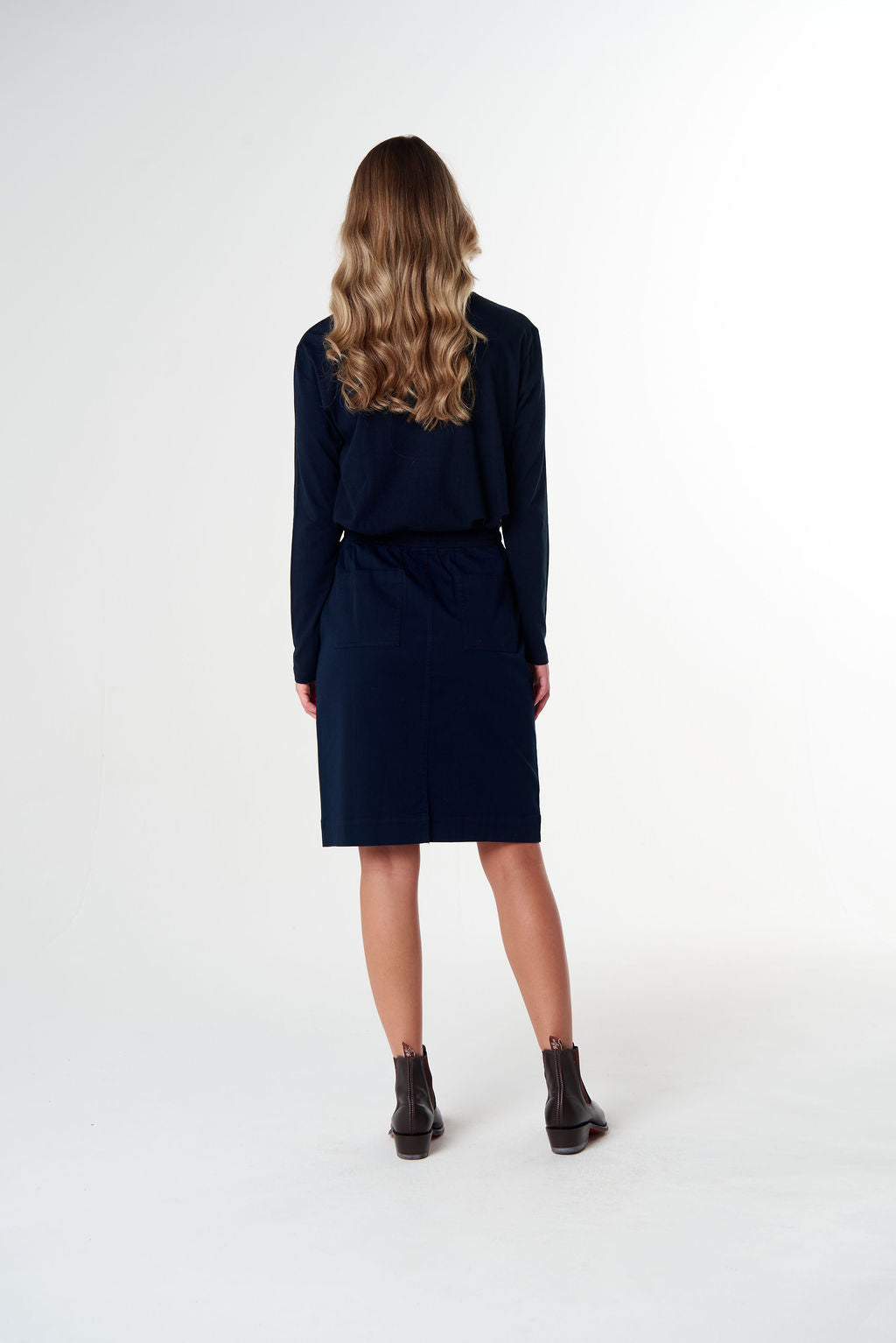 The Weekend Cotton Skirt is made from our signature cotton fabric with a touch of stretch for comfort and ease. Designed with a straight cut and practical pockets, this versatile knee-length style is an effortless option for everyday wear, pairing perfectly with tees, shirts or relaxed knits.