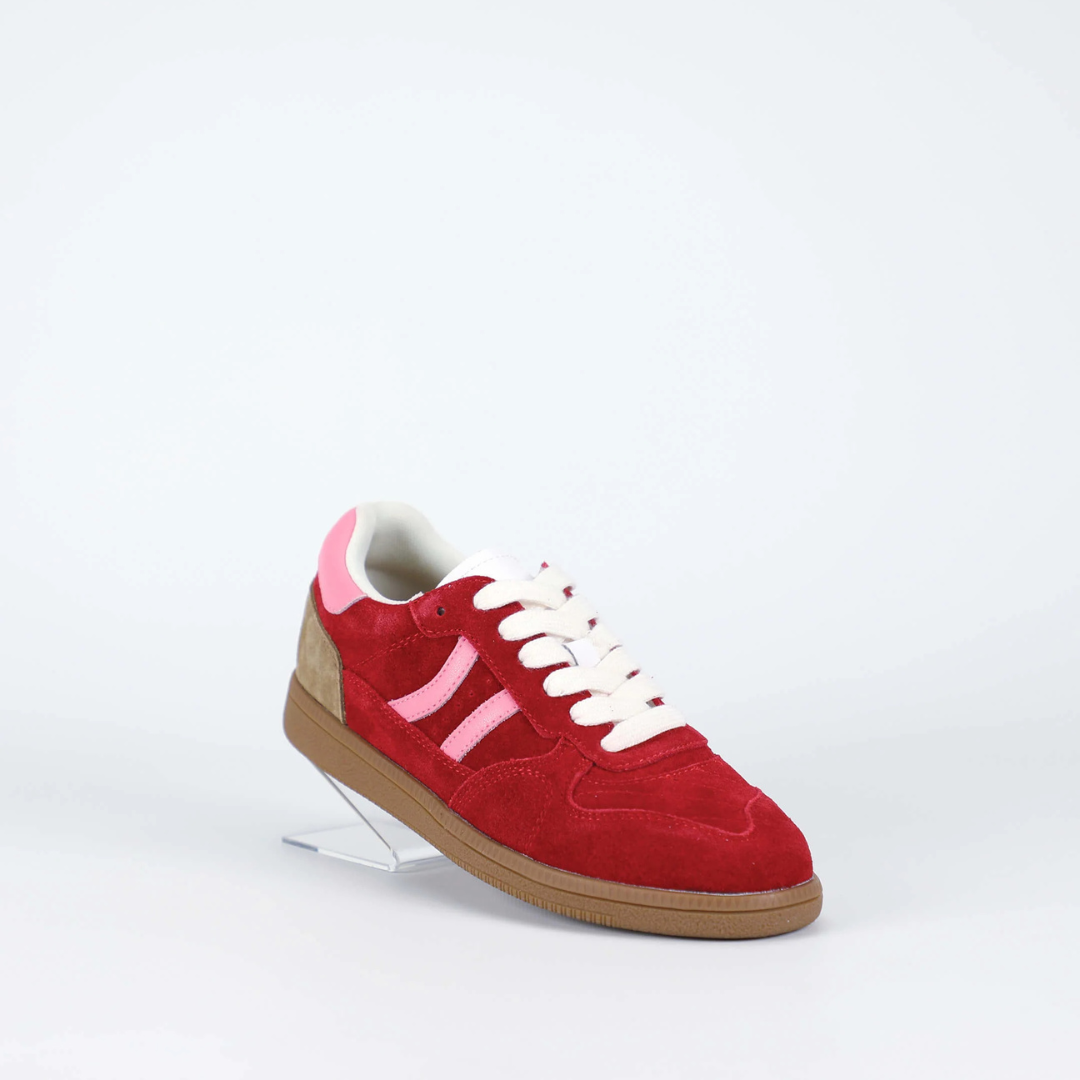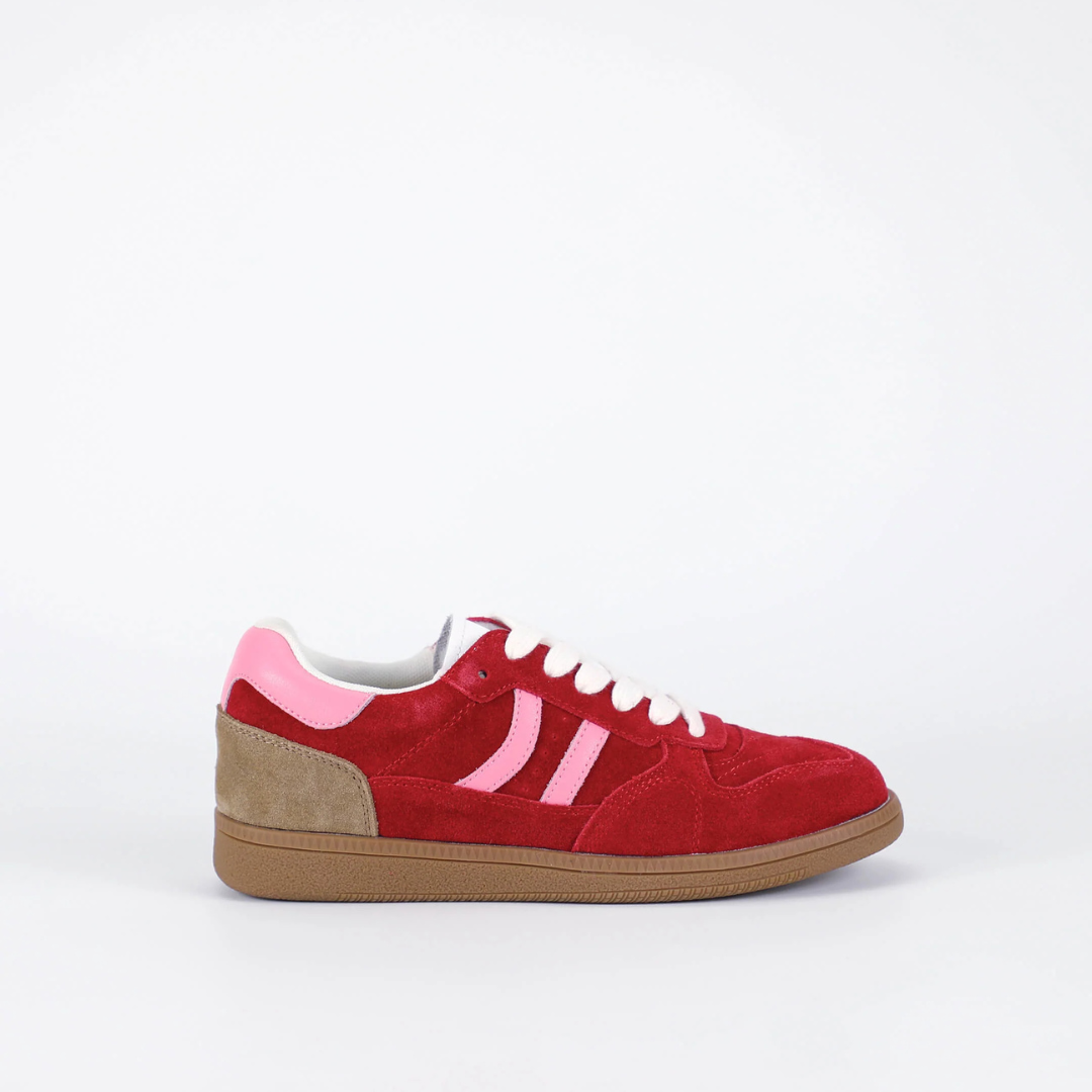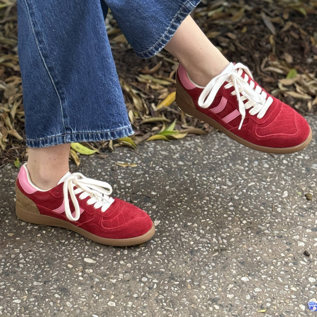 A retro-inspired sneaker designed to bring colour and personality into everyday dressing, Sunny blends soft suede with contrast stripes and a classic gum sole. The bright red finish adds a fresh, fashion-forward touch, balanced by a cushioned sole for comfortable all-day wear.