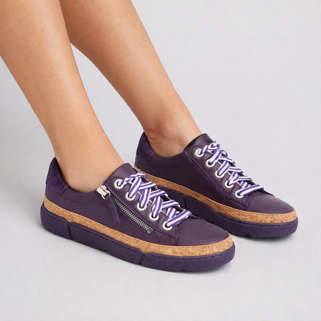 Refresh your everyday wardrobe with these effortlessly stylish leather sneakers by Django & Juliette. TORAYNE in Purple is a modern lace-up sneaker designed for comfort and convenience, featuring a functional side zip that makes slipping them on and off a breeze. Crafted from soft leather, this versatile style is perfect for busy days when you want both practicality and polish.