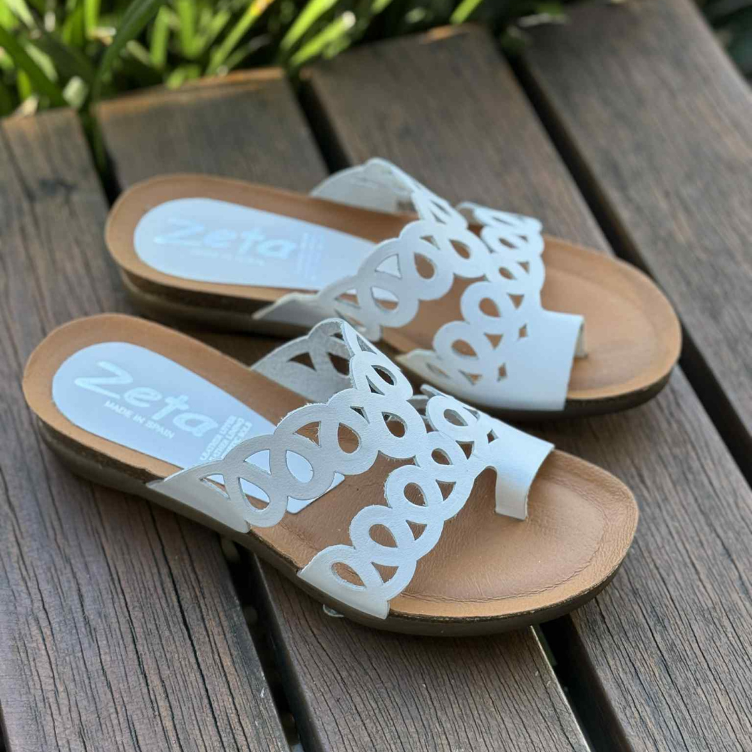 Zeta Pepita Slide Sandals in White