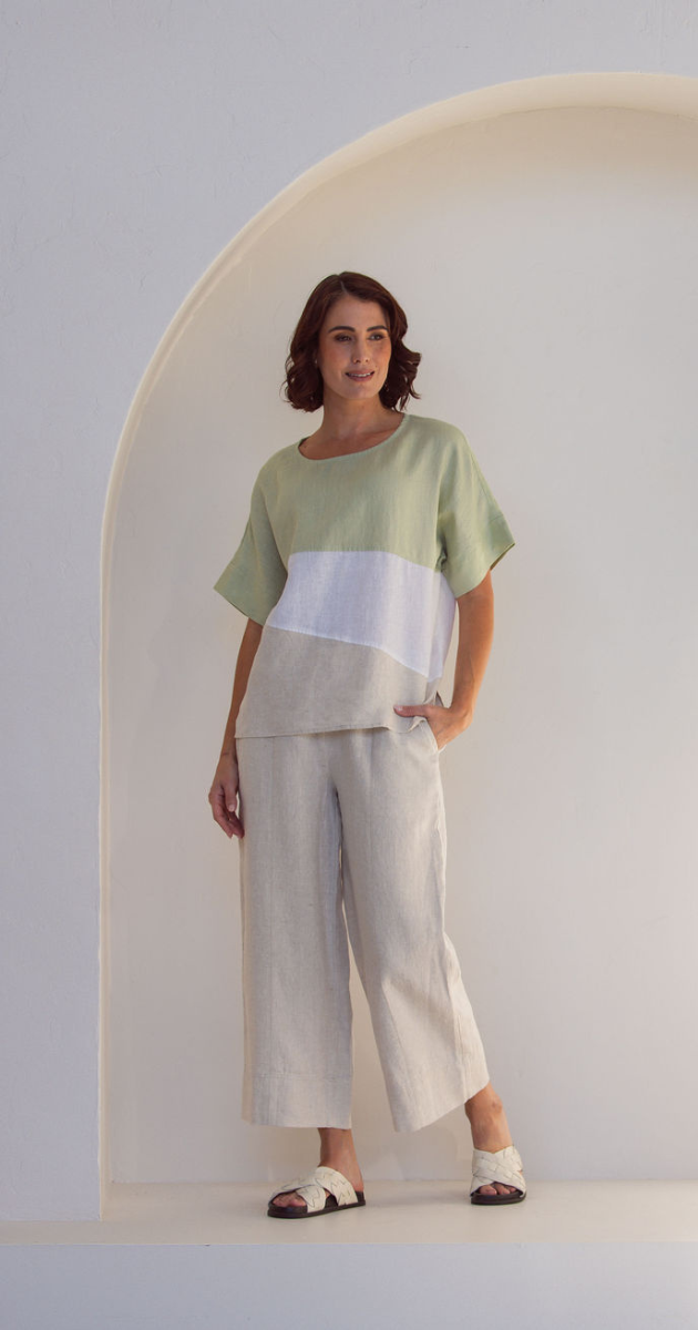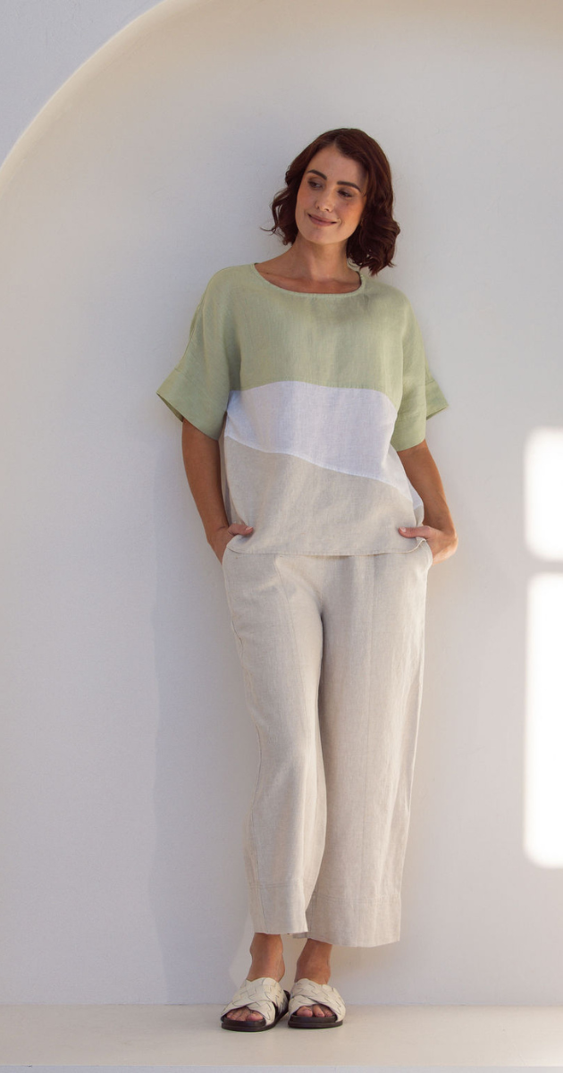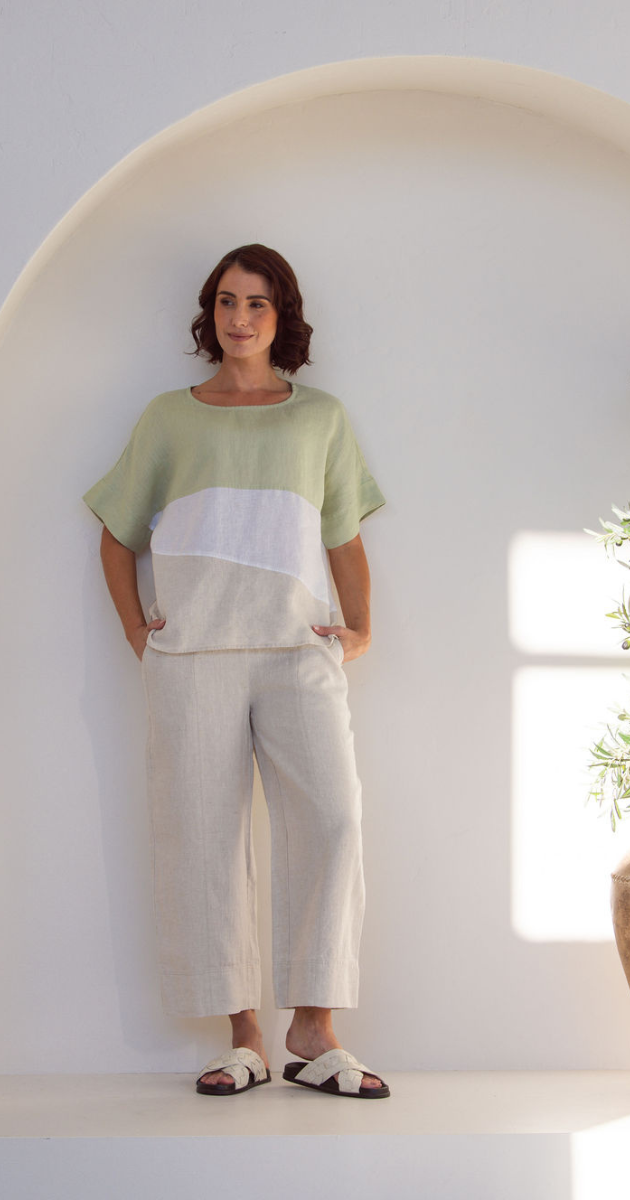 See Saw SS816N 100% Linen 7/8 Wide Leg Seam Detail Pant Natural