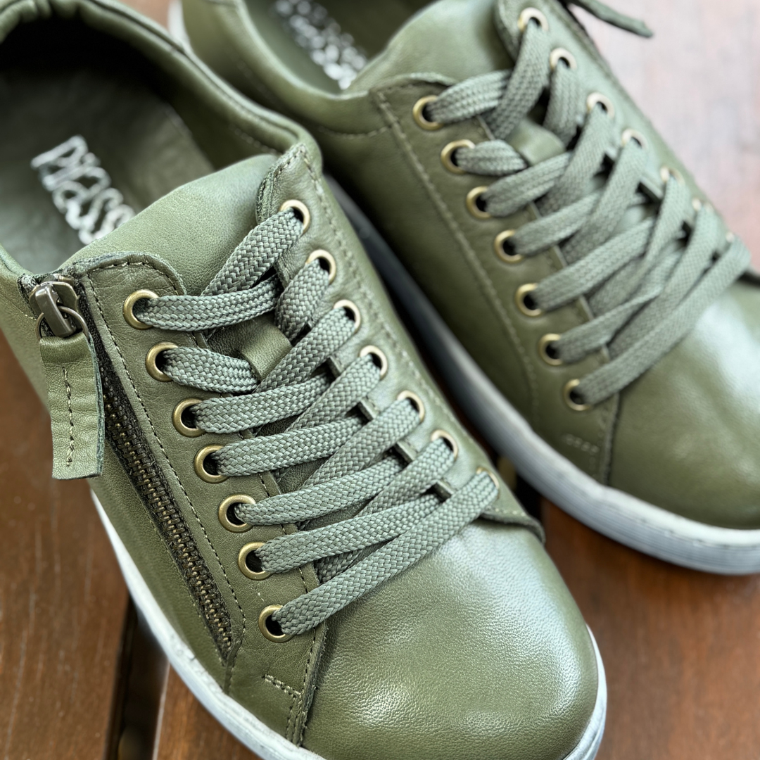 The earthy olive tone is effortlessly wearable and pairs beautifully with denim, black, navy and neutral outfits. A functional side zip allows for quick and easy entry, while the lace-up front provides a secure, adjustable fit for personalised comfort.