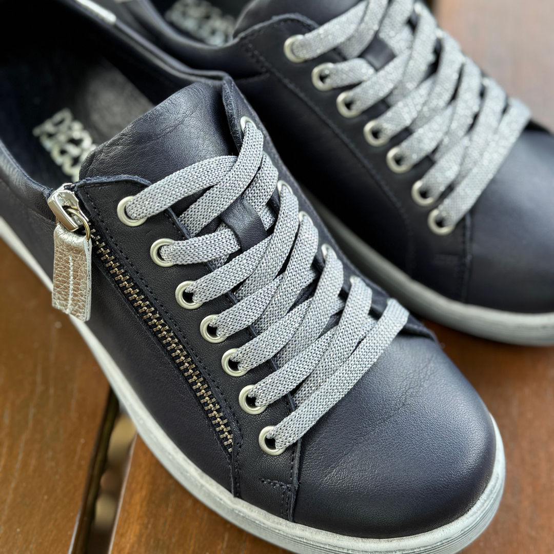 Meet the sneaker your customers come back for — now in a timeless Navy with Silver trim. The Rilassare Token blends everyday comfort with effortless style, making it a go-to for women who want softness, support and versatility in one beautifully crafted shoe.