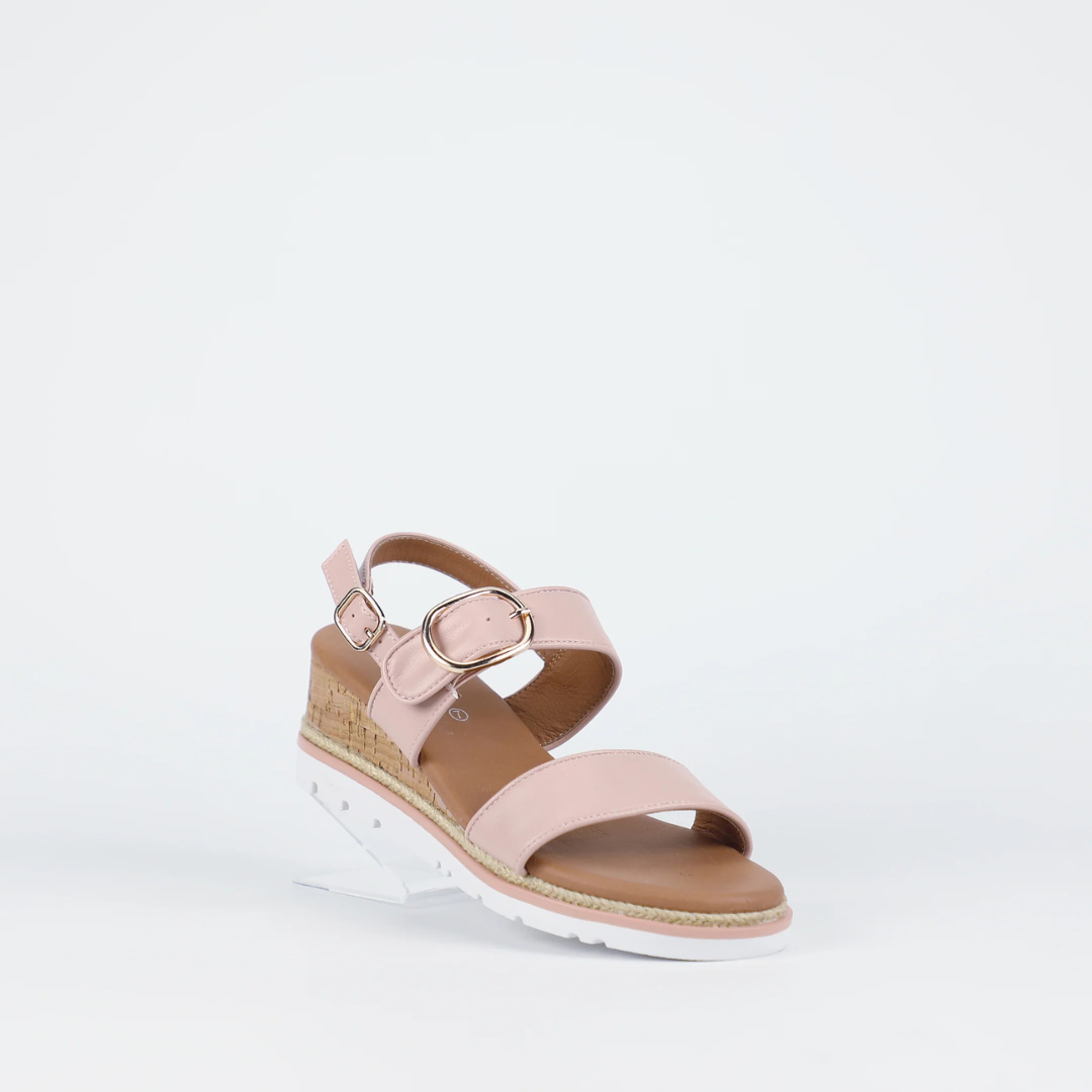 Elevate your summer wardrobe with Ranch in classic blush leather. With sleek straps, a polished buckle and a supportive fashion-forward cork wedge, it’s a sandal that speaks to the season’s love of elevated ease - versatile enough for everything from long lunches to evenings out.
