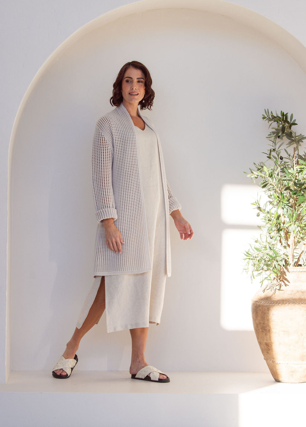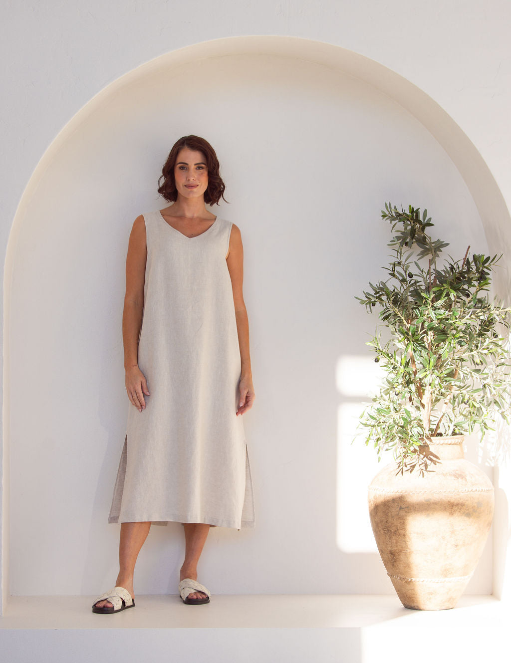 See Saw SS813N 100% Linen Sl Dress with Side Splits Natural